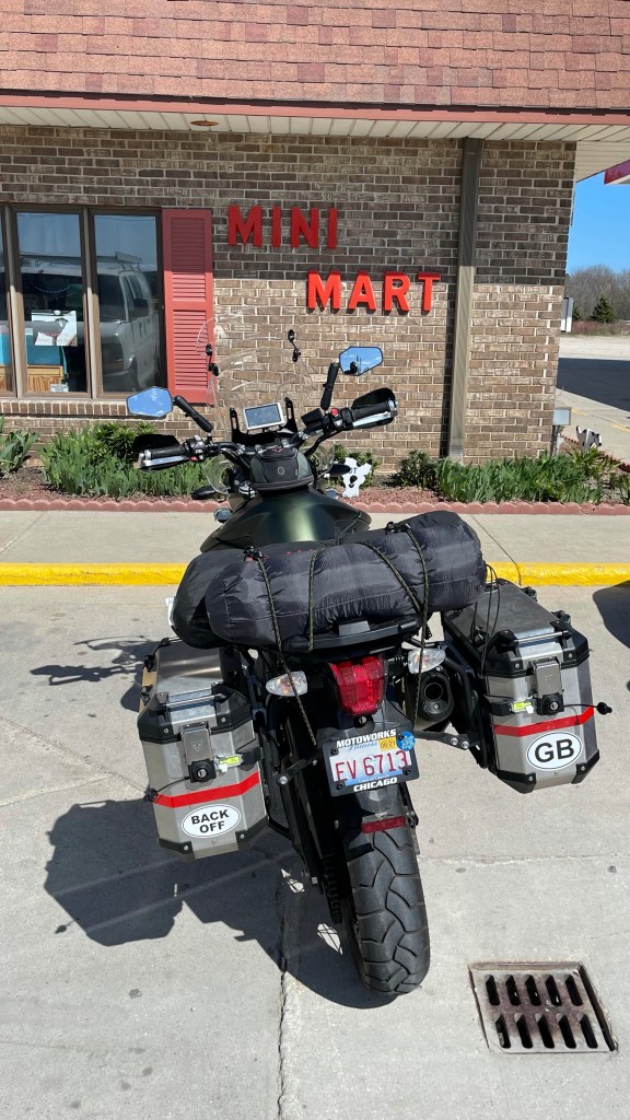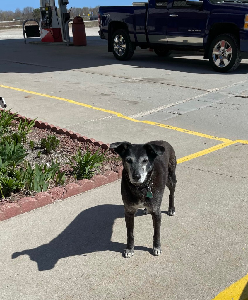 – at a fill-up just north of Milwaukee I spotted a pup wandering around the gas station. Looking for the owner I spied a sign on Mart’s window. “I live here. My name is Diesel” when getting a quick coffee I asked the attendant how old the old boy was. “Quite old” came the reply. “And he’s the second Diesel!”