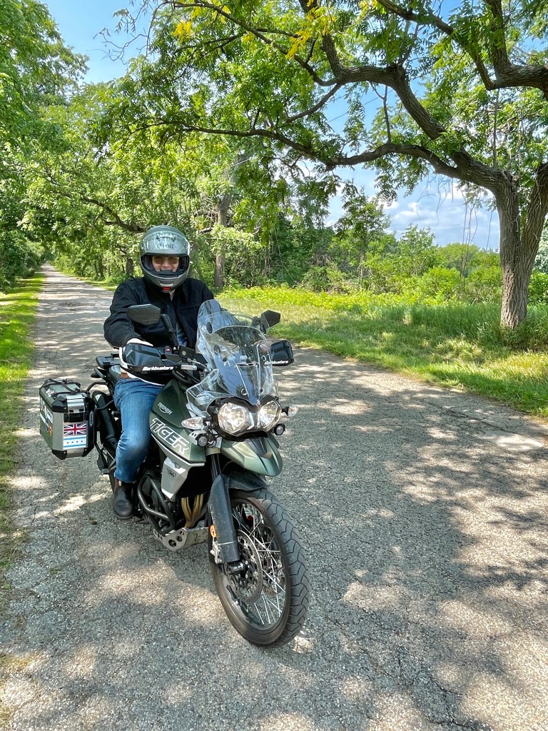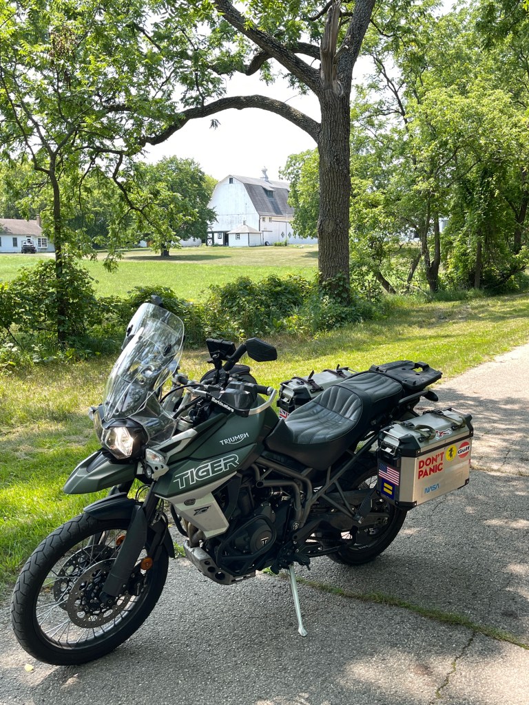 – planning on some summer commuting mikes so I need to park the Tiger in our small yard. Locked to the house wall and covered.