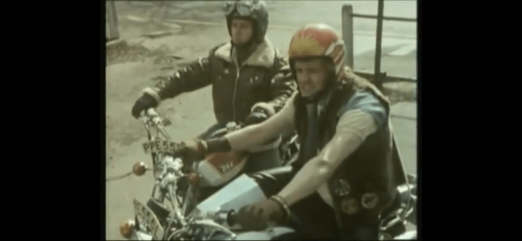 – if you grew up in Britain in the Seventies you would surely remember the children’s sci-fi tv show The Tomorrow People. I watched episode 1 last night and happened upon these pair of cockney thugs who were chasing the teenage telepaths on BSA bikes. Nostalgia.