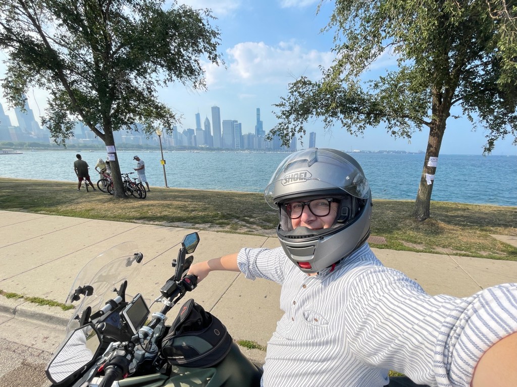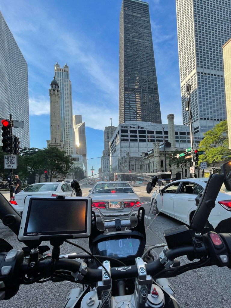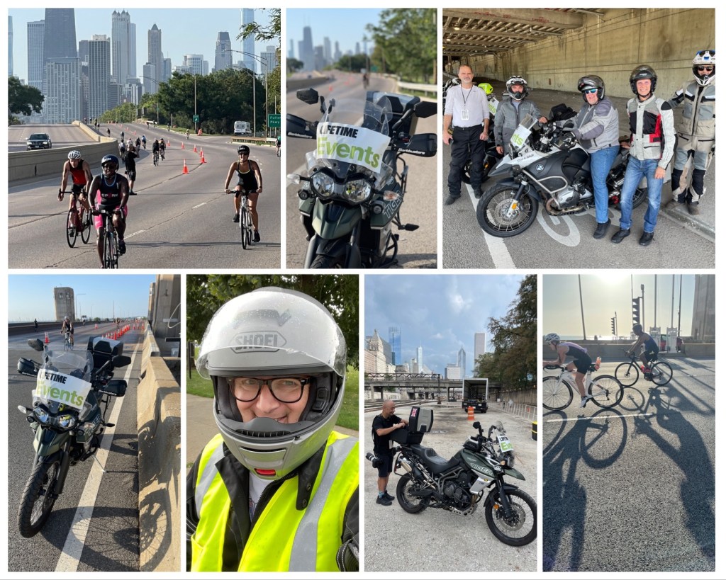 – an early Sunday saw me in Grant Park at 5am to meet with the others in the motorcycle crew for this year’s Triathlon. Again, I ferried Oli the photographer around the course to allow him to capture the athletes. Mostly loops up Lake Shore Drive, but also rode along the busway, a secretive road between the Illinois Center and McCormick, and some sections of the south lakefront trail to see the runners. Nice team and splendid weather.