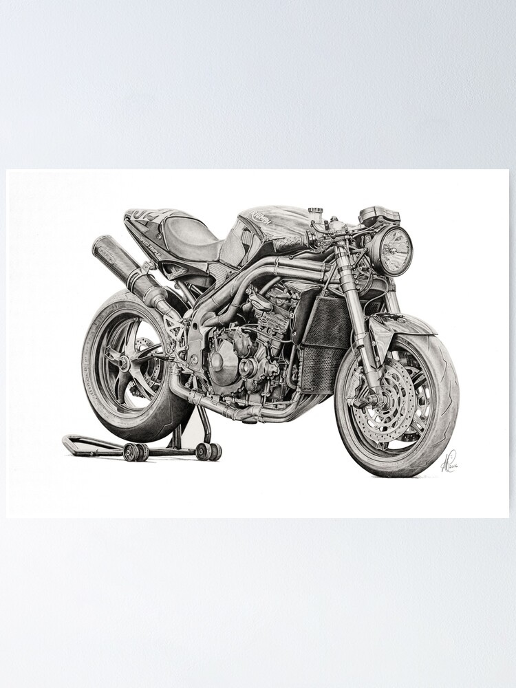 – Someone has an adept hand with the HB pencil when it comes to visual acuity in this sunlike recreation of a Speed Triple. Intricately detailed like one of the engineering illustrations of the fifties that were created in the large draughting rooms of the factories.