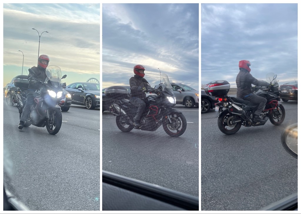 – spied on Lake Shore Drive on my way into work today. A well used V-Strom carrying its owner into the City. The decal clad top box says this rider means business in urban traffic.