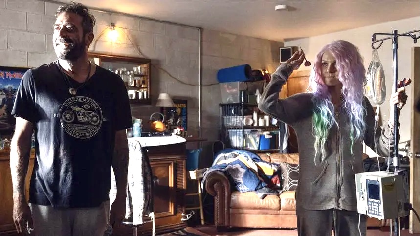 – we caught up with the 10th season of The Walking Dead. The final episode tells the past history of the villainous antagonist Negan Smith and his wife Lucille. Early days of the zombie apocalypse only hints at his tyrannical dictatorship of the Saviors. His weapon of choice, a barbed wire headed baseball bat, gets named after Lucille. Negan is seen wearing a motorcycle tshirt, and his signature leather biker jacket is introduced.