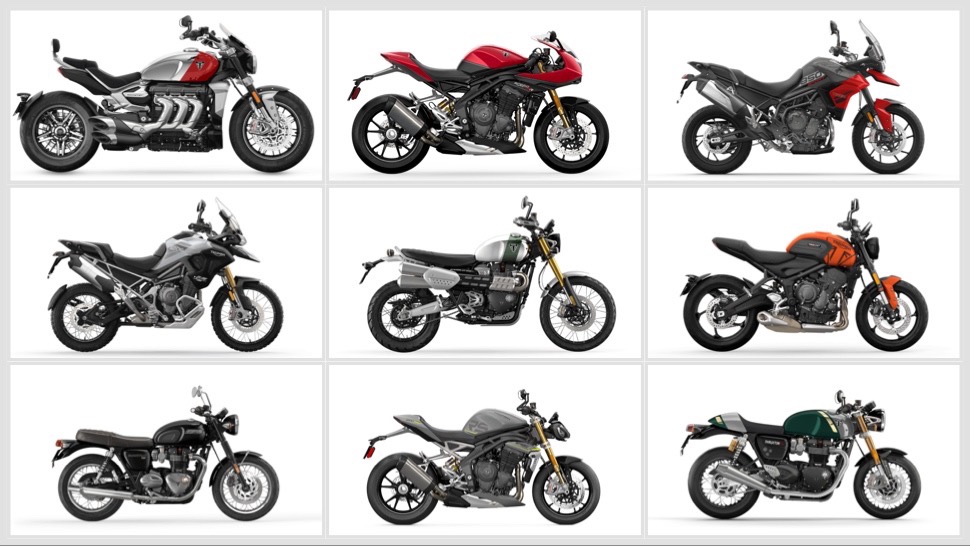 The models currently available from Triumph offer diverse riding styles. From Superbike fast; to rugged adventure; and distinguished classic. All quite marvelous.