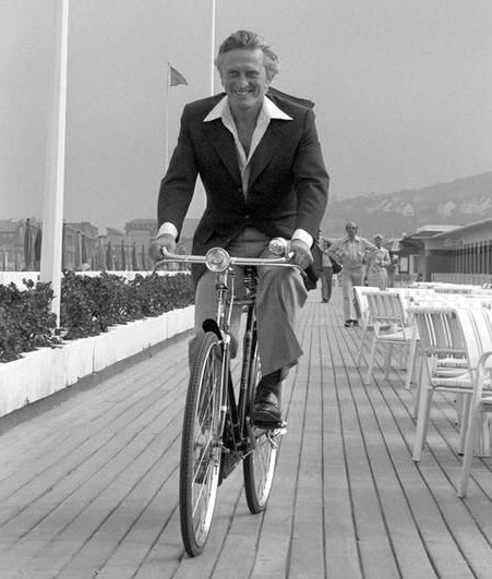 – Actor Robert Shaw taking a spin around the fishing village of Meneshma on Martha’s Vineyard which stood in for the salty fictional island location. He’s probably got a couple of bottles of scotch in the handlebar basket for an evening booze session with the locals.