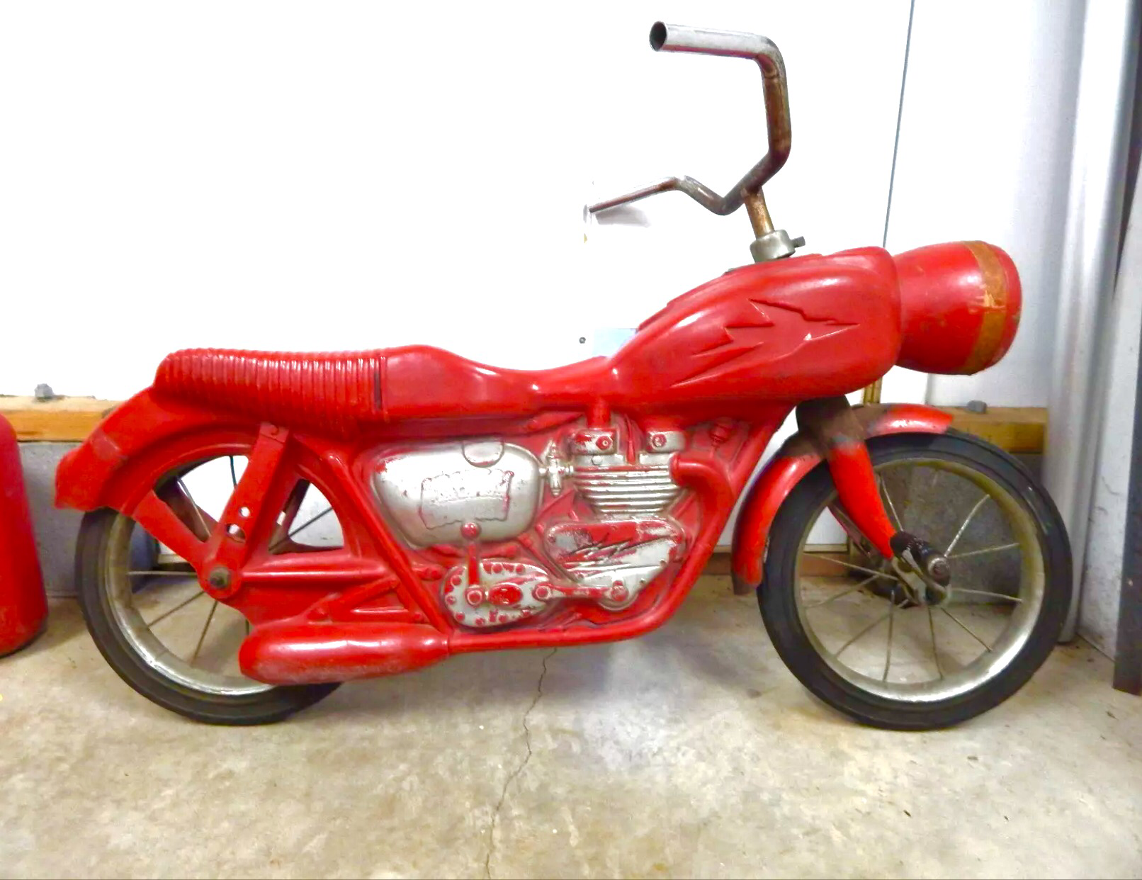 Some form of two wheeled transport is always wished for at Christmas. If I was a young ‘un back in the early sixties I want one of these. Red Triumph Thunderbird inspired pedal motorbike. I bet many a motorcyclist started out like this! Pillion capabilities too.