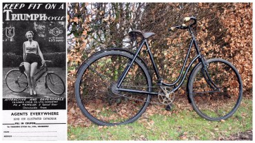 I want to ride my bicycle- This 1903 Triumph safety bike has such an elegant shape. With a sinuous open frame to allow women to pedal in their skirts. These old human powered machines just look so perfect in their functional purpose. The advert to the left is a mid-Century model promoting the bike as a form of exercise; though the dropped cross bar seems a tad dated.