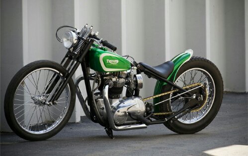 ’52 T100 given a light bobber treatment complete with an appropriate feline grimace for the original Tiger…