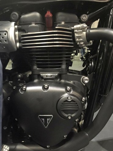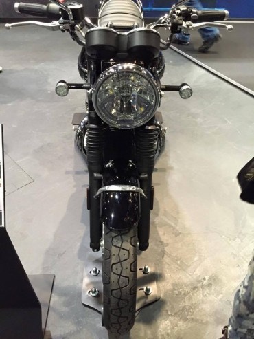 This is the centerpiece of the show: T120R Bonneville. It’s exciting, nimble looking, beautifully executed and is a visual clone to the sublime ’68 Bonnie. From a narrow corseted waist that you experience when sitting on, to the appearance of the engine with hints of Edward Turners original twin from the 30’s.