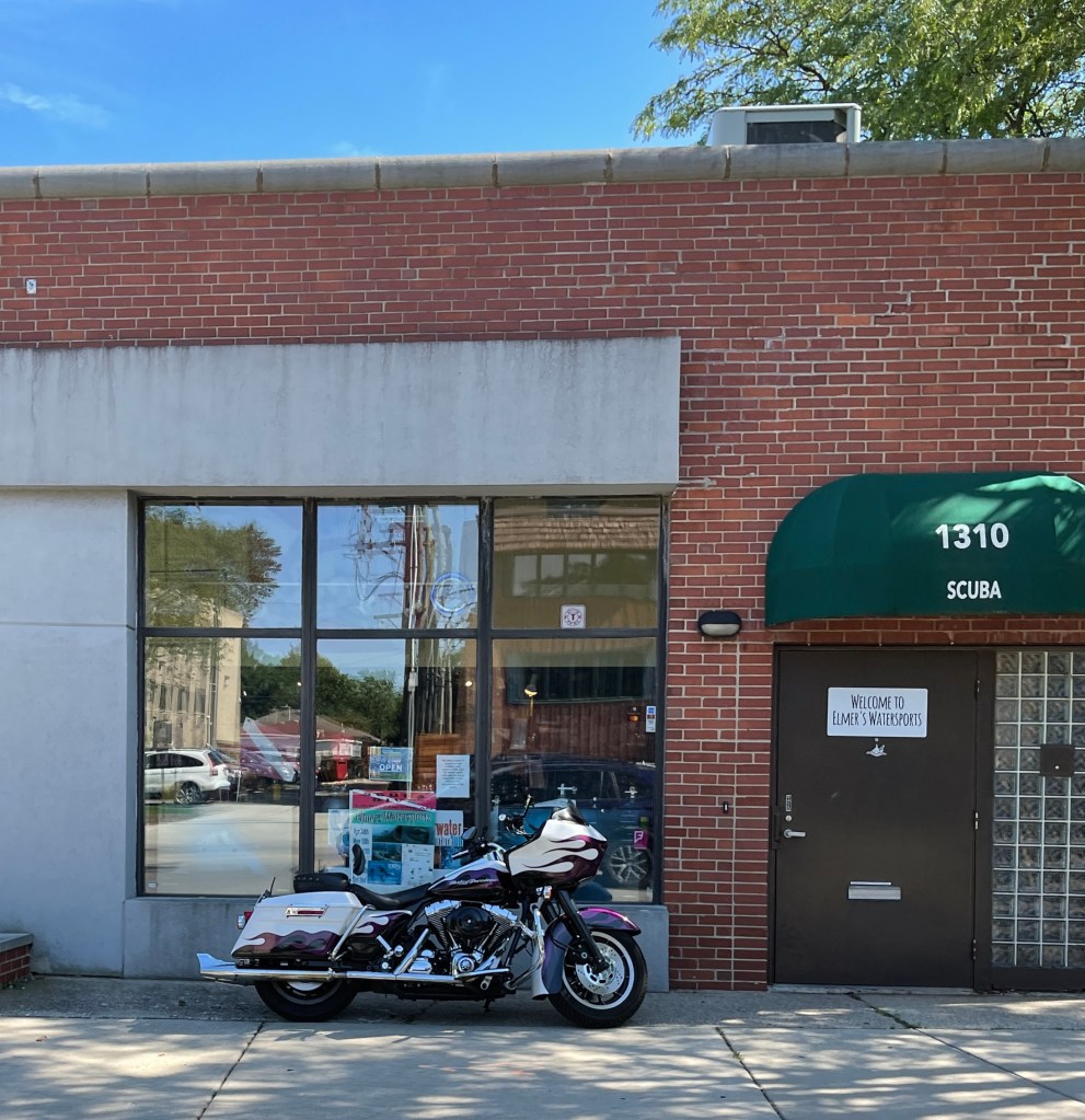 Driving past Elmer’s Watersport I saw the owner, Myron Siciak’s Harley parked out front. I used to be a dive instructor at this ‘shop. Many moons ago.