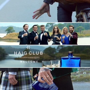 Beck’s is all Highland cool now with his own designer label whisky which glugs from an oversized azure aftershave bottle being slugged by a bevy of oh-so pretty rich Mac-yuppies.
