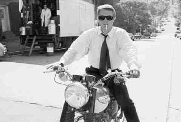 Stay Cool | Effortlessly is how Steve McQueen maintains his aplomb attitude. White shirt, black tie and Persol shades. The Viceroy cigarette barely hanging to his lower lip is pure effect.