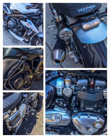 Pentagon | an errand in the City allowed me to drop my new panniers off to Johnny Scheff’s Motoworks to have their looks keyed to my ignition key. The new Triumphs looked splendid in the August sunshine. The current line-up are all cracking looking bikes.