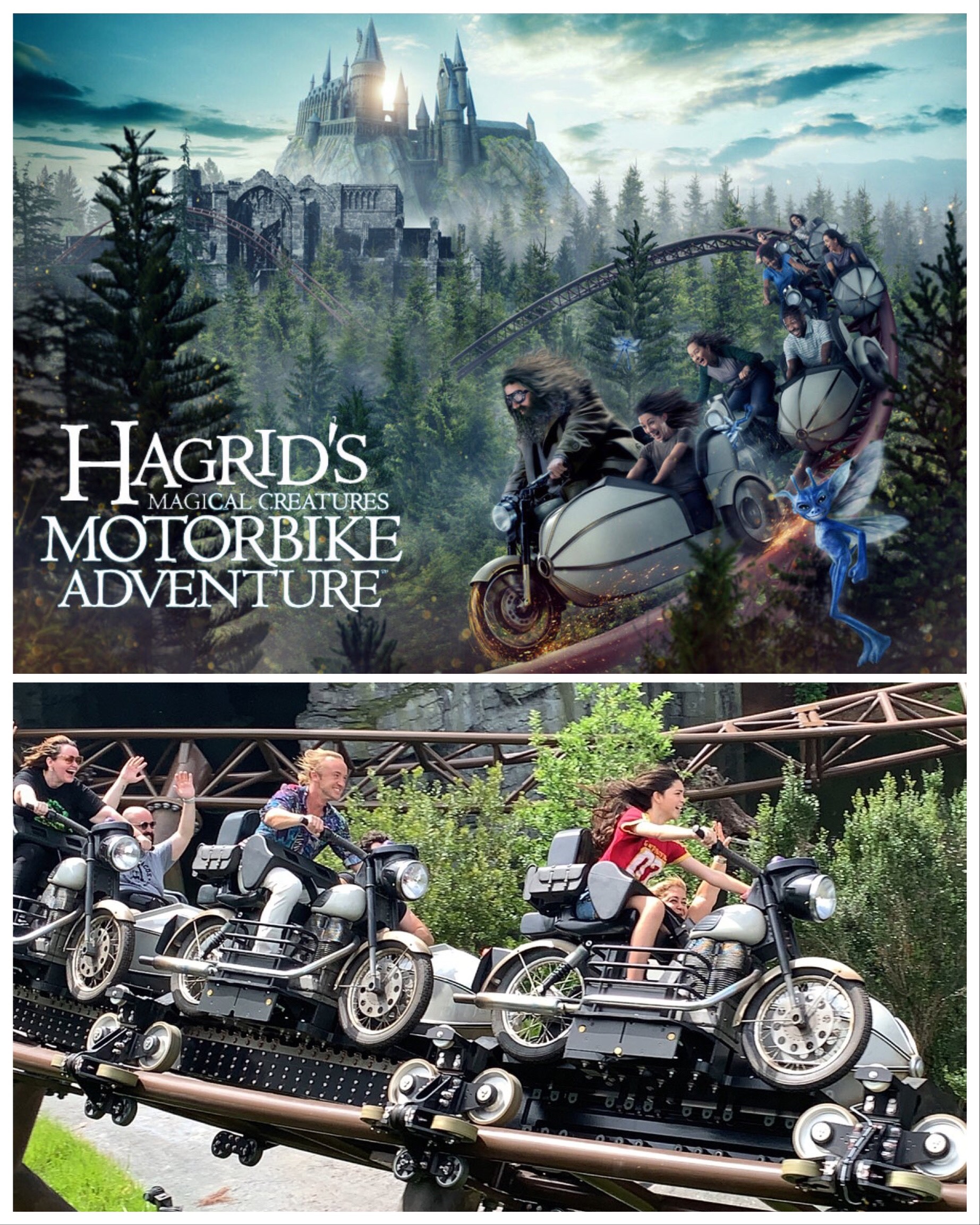 Amusement Ride | more excitement and fun from the further escapades of the Harry Potter world. This time a roller coaster utilizing Hagrid’s Triumph sidecar outfit as the carriages. As we know I’m sure it’s not as good as the real thing…