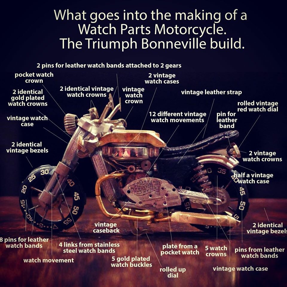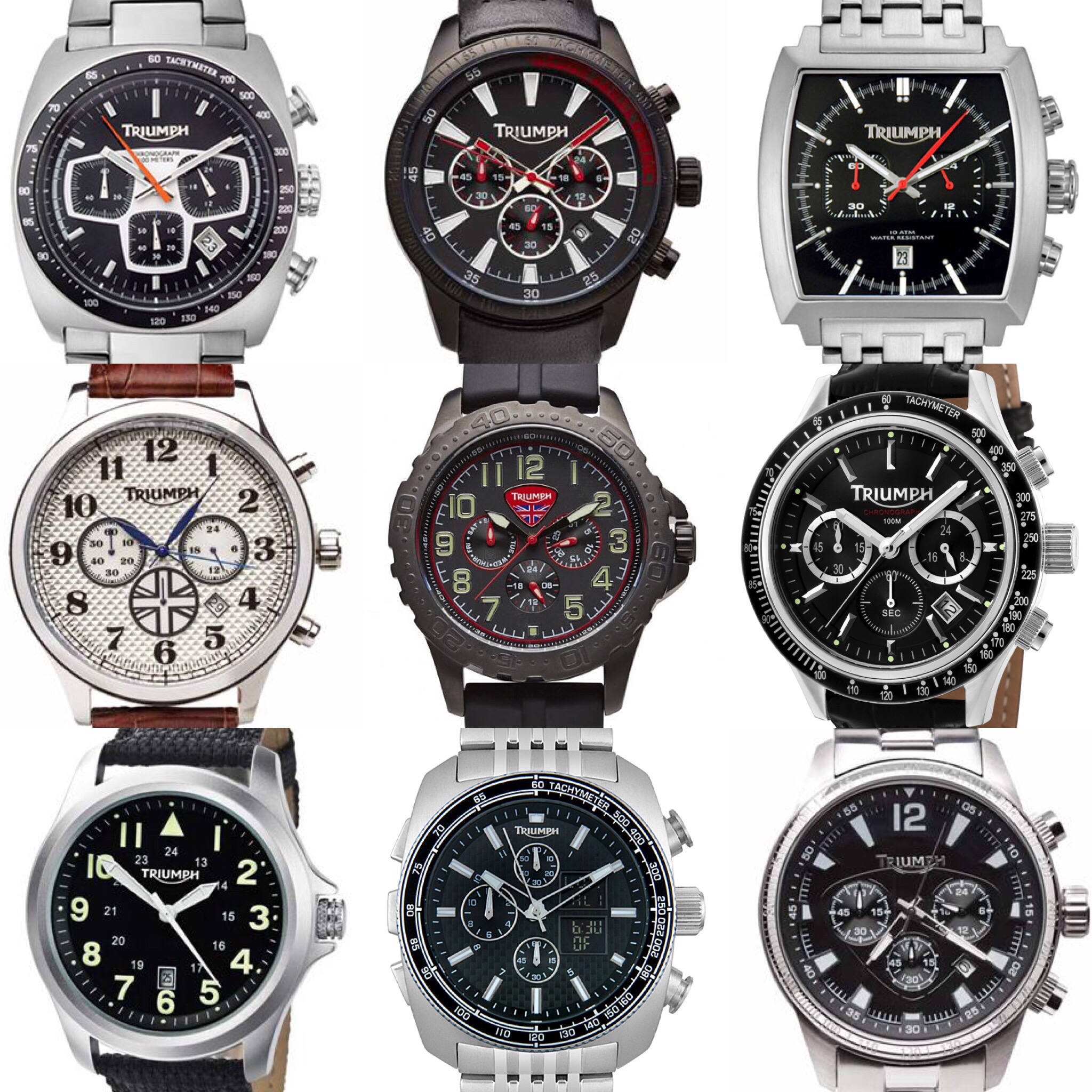 Quelle heure est il? The many faces of Triumph timepieces. One through teelve and zero to sixty; timers and calendars; velocity and minute bezels; leather strap or stainless bracelet. With smartphones watches are becoming defunct, but I’ve gone back to wearing one for ease of timekeeping. The Chronograph lives on!